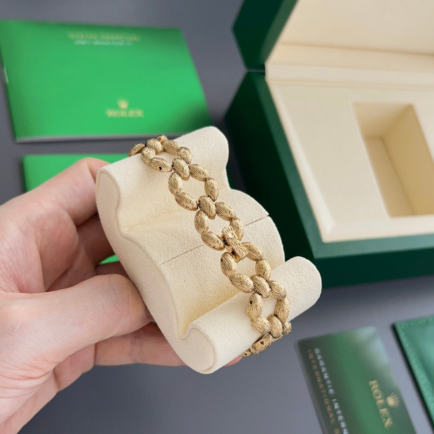 This rare woven bracelet Rolex is an absolute steal! I also checked the Datejust, but they were all over 100,000 RMB. The full gold bracelet has a nice feel to it. I just love the solid, high-quality feel of Rolex. Wearing a Rolex gives it a strong presence, and this gold bracelet is incredibly versatile.